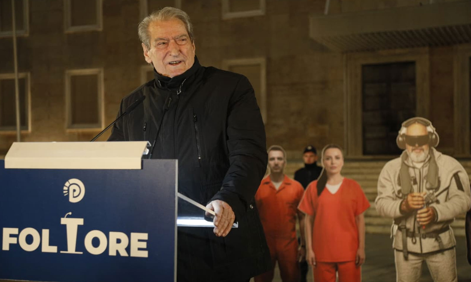 Regjimin, i cili mbahet në këmbë me mashtrime, me propagandë, me trillime. Regjimin që pret nga ne qytetarët t’i japim ndëshkimin që meriton. Miqtë e mi, Edi Rama ndërkohë që shqiptarët janë të vendosur t’i japin ndëshkimin e merituar, po ecën drejt grushtit të shtetit. Po ecën drejt bllokimit të sistemit të drejtësisë. Ai, një një akt të papërgjegjshëm, sfidon dhe poshtëron shqiptarët çdo ditë, duke u nxjerrë maskën e tij, Lubi Ballukun, për t’u thënë atyre që ne as që pyesim për ju. Po ja ku do i themi ne në emër tuaj, edhe ne në mënyrë absolute nuk do pyesim për ju, dhe do kesh fatin që meriton.“ tha Berisha.