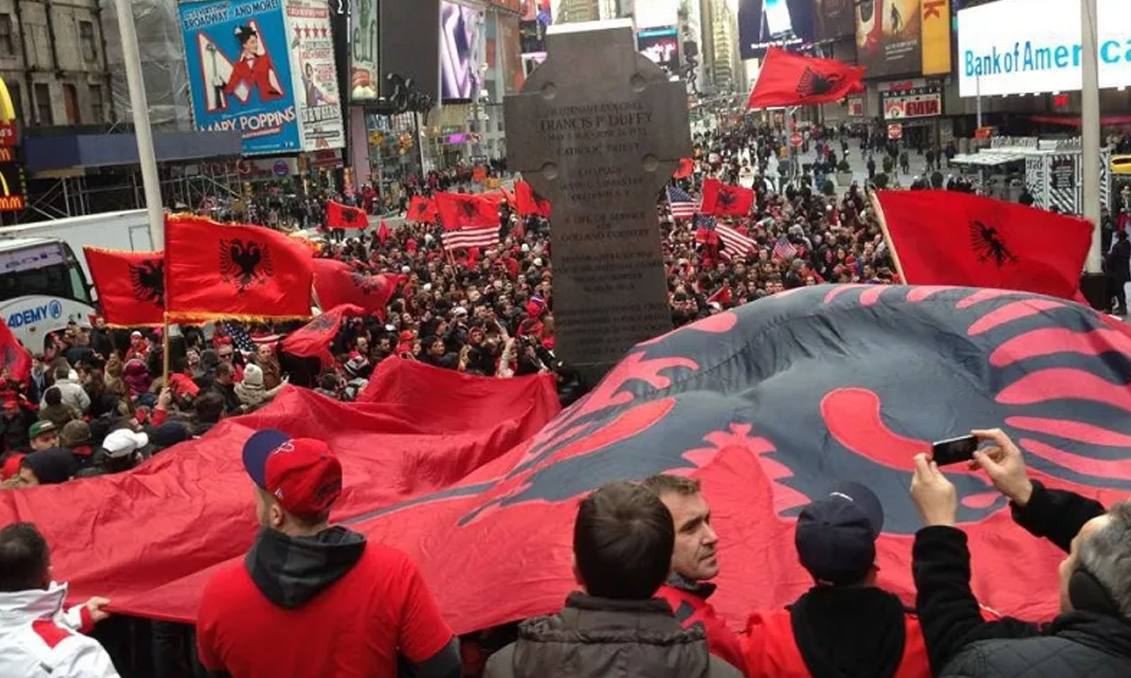 Në New York, shqiptarët janë veshur me simbole kuq e zi. Prej vitesh, në New York realizohet ajo që quhet “Parada e shqiptarëve”.