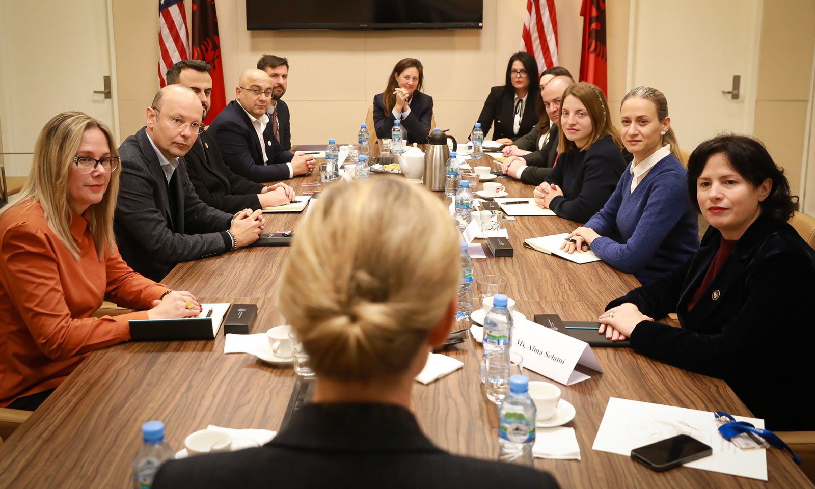 “Këtë javë, e Ngarkuara me Punë Nancy VanHorn u takua me deputetë të rinj nga Partia Socialiste dhe Partia Demokratike për t’i përgëzuar ata teksa nisin Programin Ndërkombëtar të Vizitorëve Udhëheqës (IVLP).