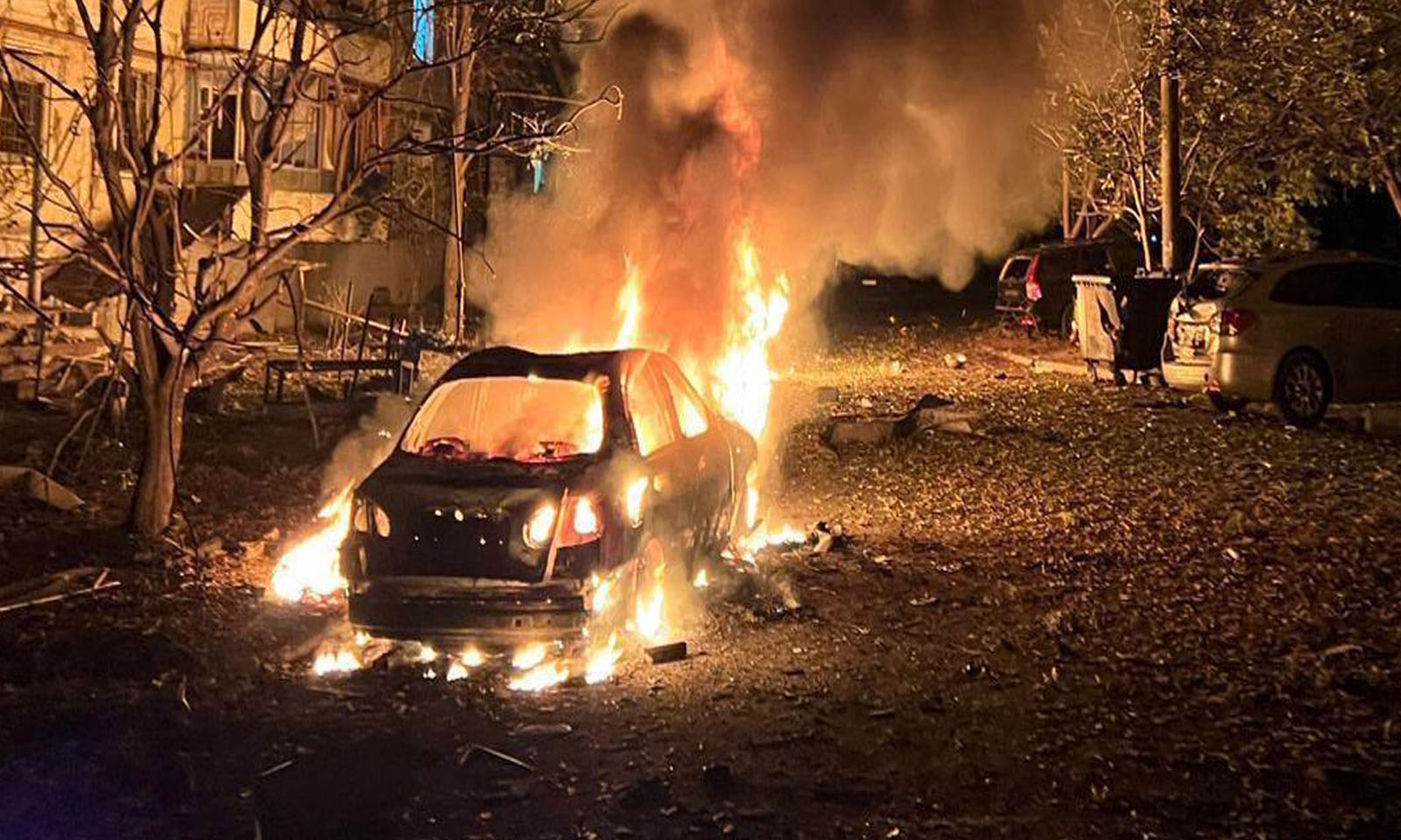 Sulmi dëmtoi gjithashtu një ndërtesë apartamentesh në ndërtim e sipër në pjesën perëndimore të qytetit.