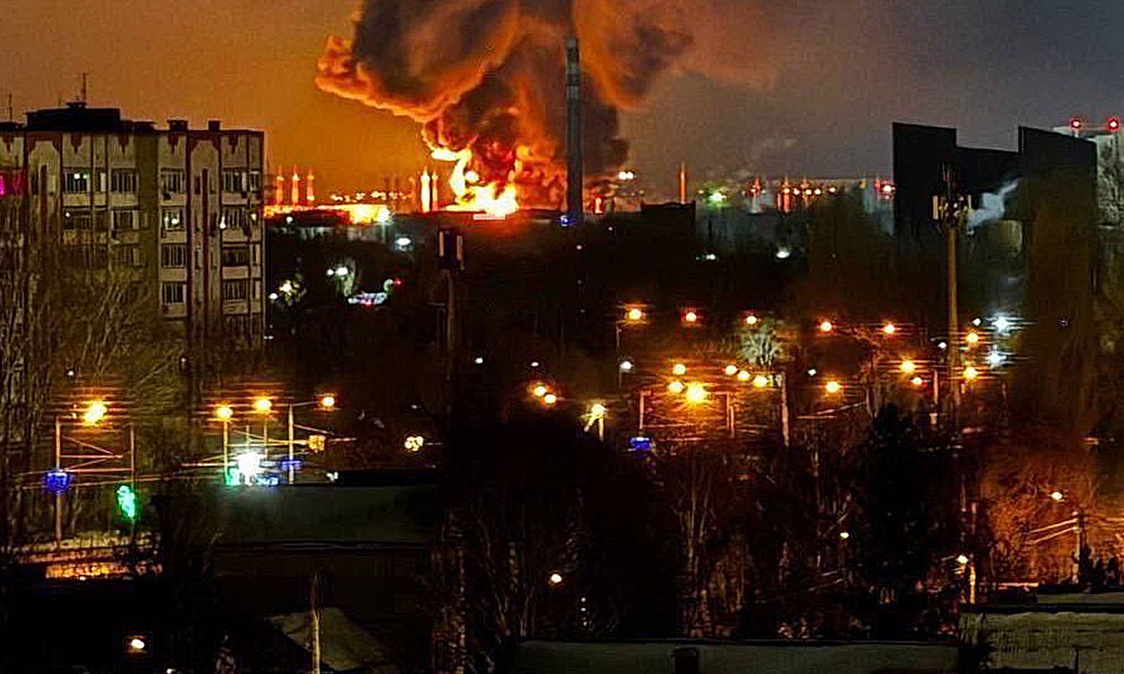 Dëshmitarët postuan foto dhe video në mediat sociale të zjarrit që përfshiu depon e naftës.